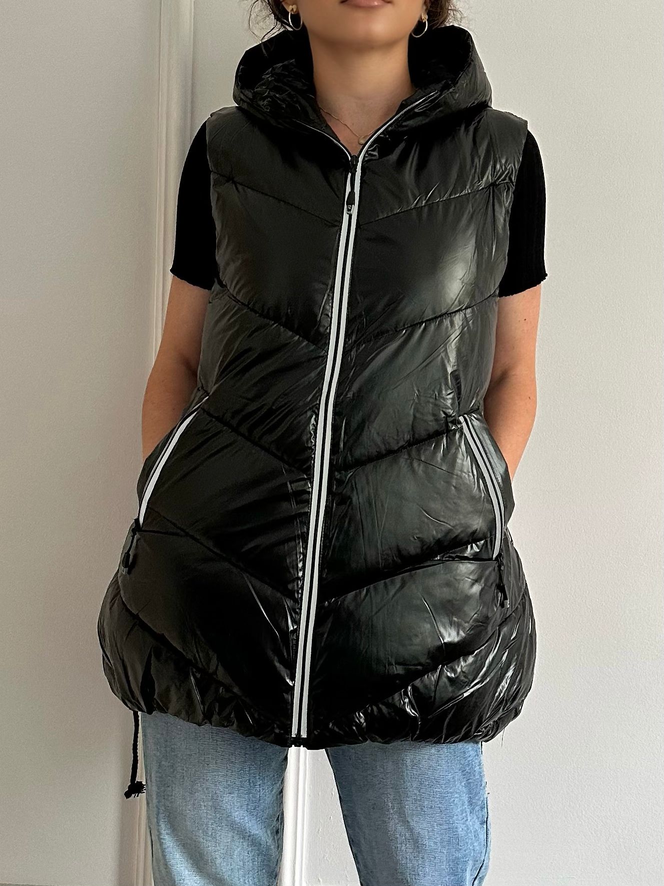Realizată dintr-un material de calitate superioară, vesta oferă o izolație termică excelentă, menținându-te caldă în zilele mai reci. Croiala lejeră și lungimea perfectă îți oferă libertate de mișcare și un look chic, fie că o porți peste o bluză casual sau peste un pulover mai gros.
